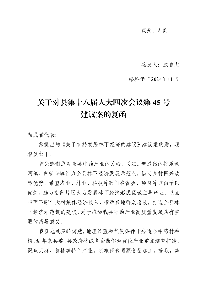 内容概述 | 关于对县第十八届人大四次会议第45号建议案的复函 |