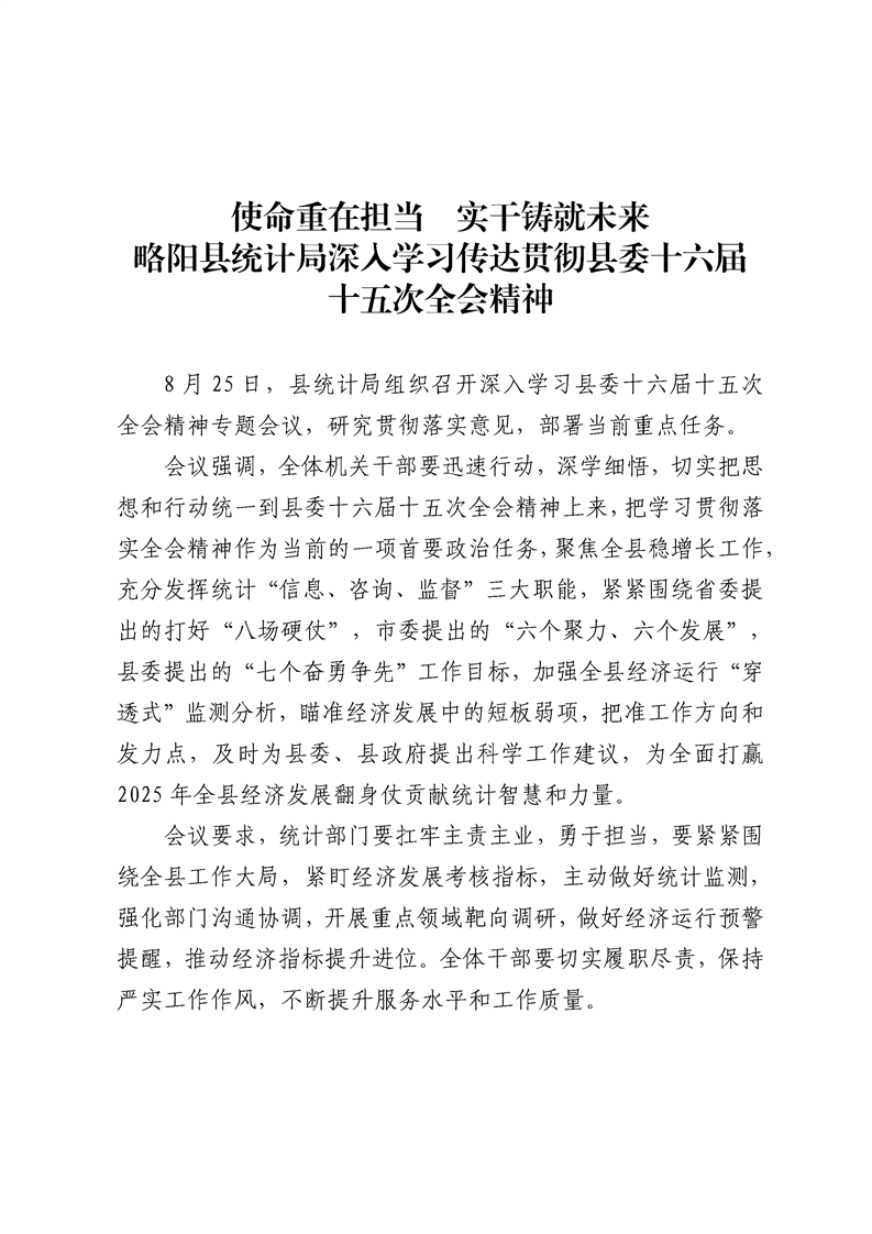 使命重在担当,实干铸就未来--星空体育首页app统计局深入学习传达贯彻县委十六届十五次全会精神