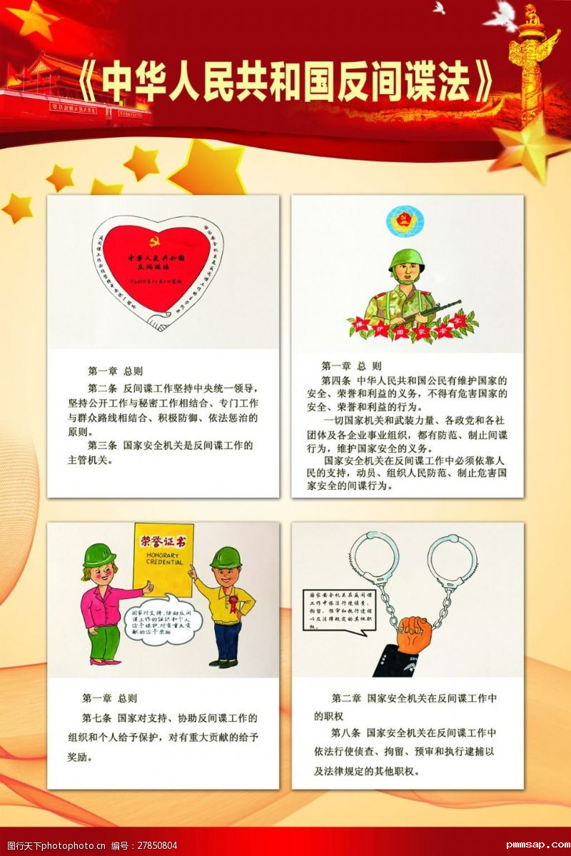 2022年11月1日是《中华人民共和国反间谍法》颁布实施8周年。为大力普及《中华人民共和国反间谍法》及其实施细则,推动机关、团体、企事业单位贯彻落实反间谍安全防范法定义务,提高市民的国家安全意识,增强全社会的反奸防谍能力,现对有关《中华人民共和国反间谍法》的内容进行介绍。