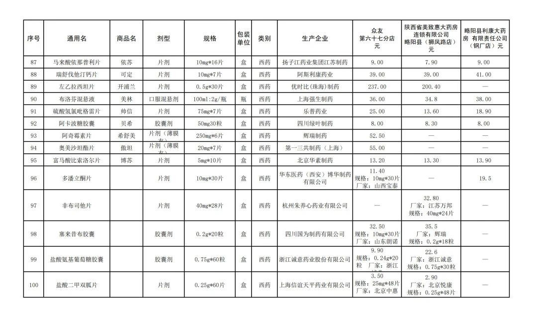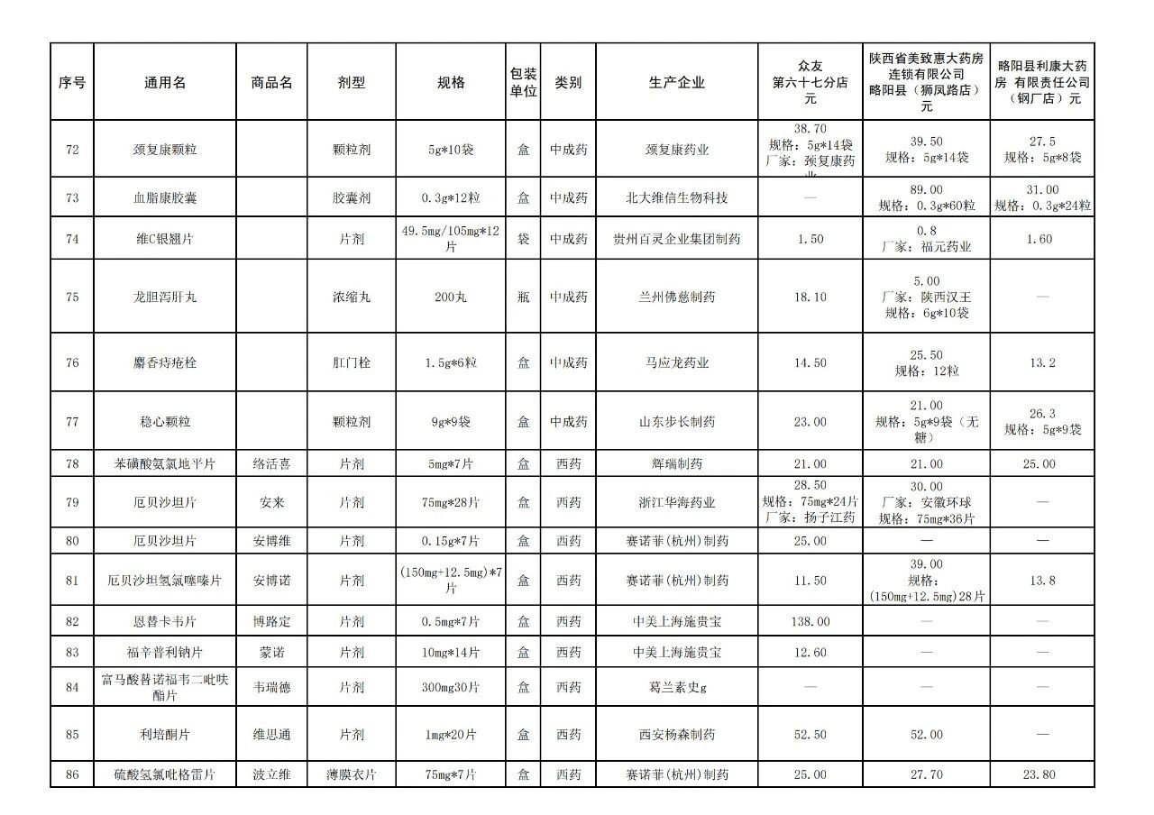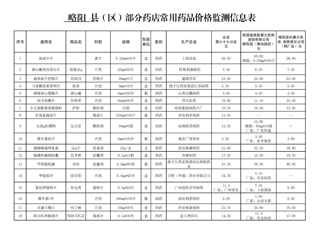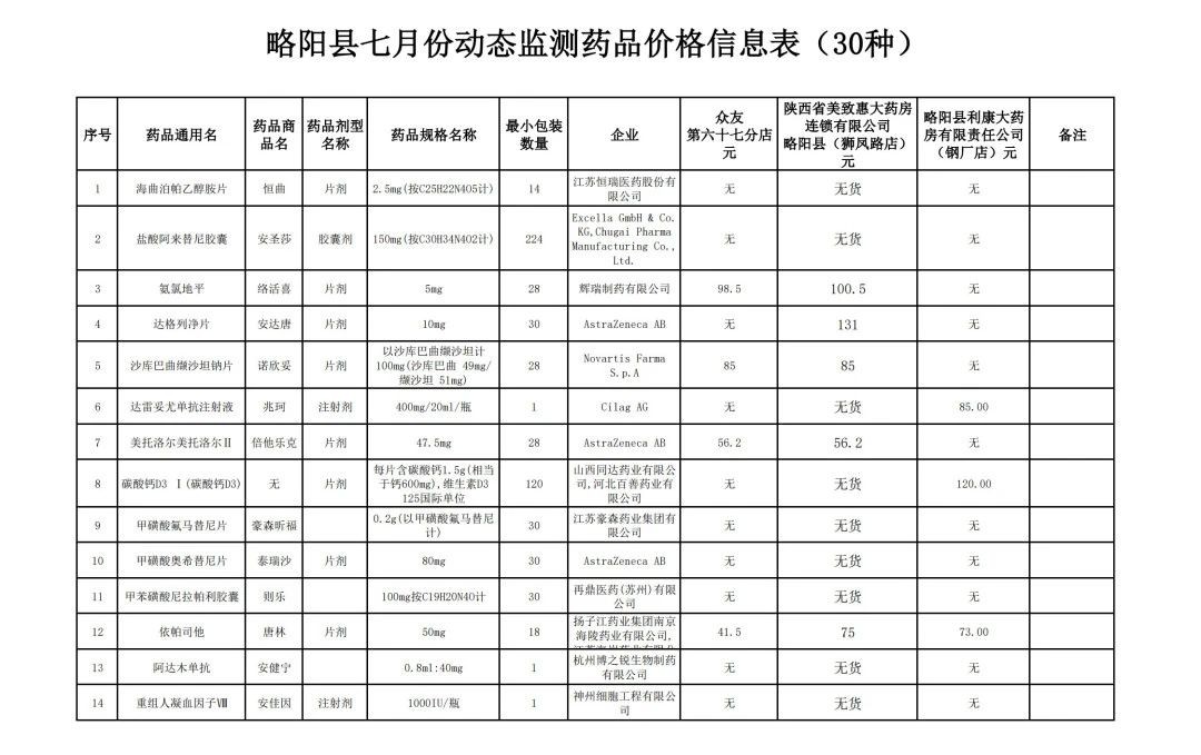 为了让人民群众切实享受到医保体制改革的成果,充分发挥医保对药品价格的引导作用,按照市医保局《关于药品价格监测有关工作的通知》要求,7月份持续对3家定点医药机构基本药品、市场销量较大药品、以及社会关注度高的药品价格进行监测。星空体育首页app医保局将药品价格监测与信息发布作为为群众办实事的重要举措,欢迎广大参保群众继续关注我县定点医药机构药品价格监测信息的发布。