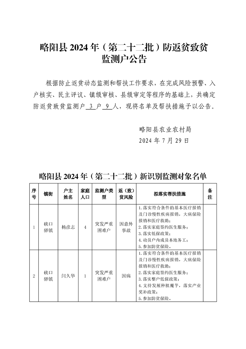 星空体育首页app防返贫致贫监测户公告(第22批)