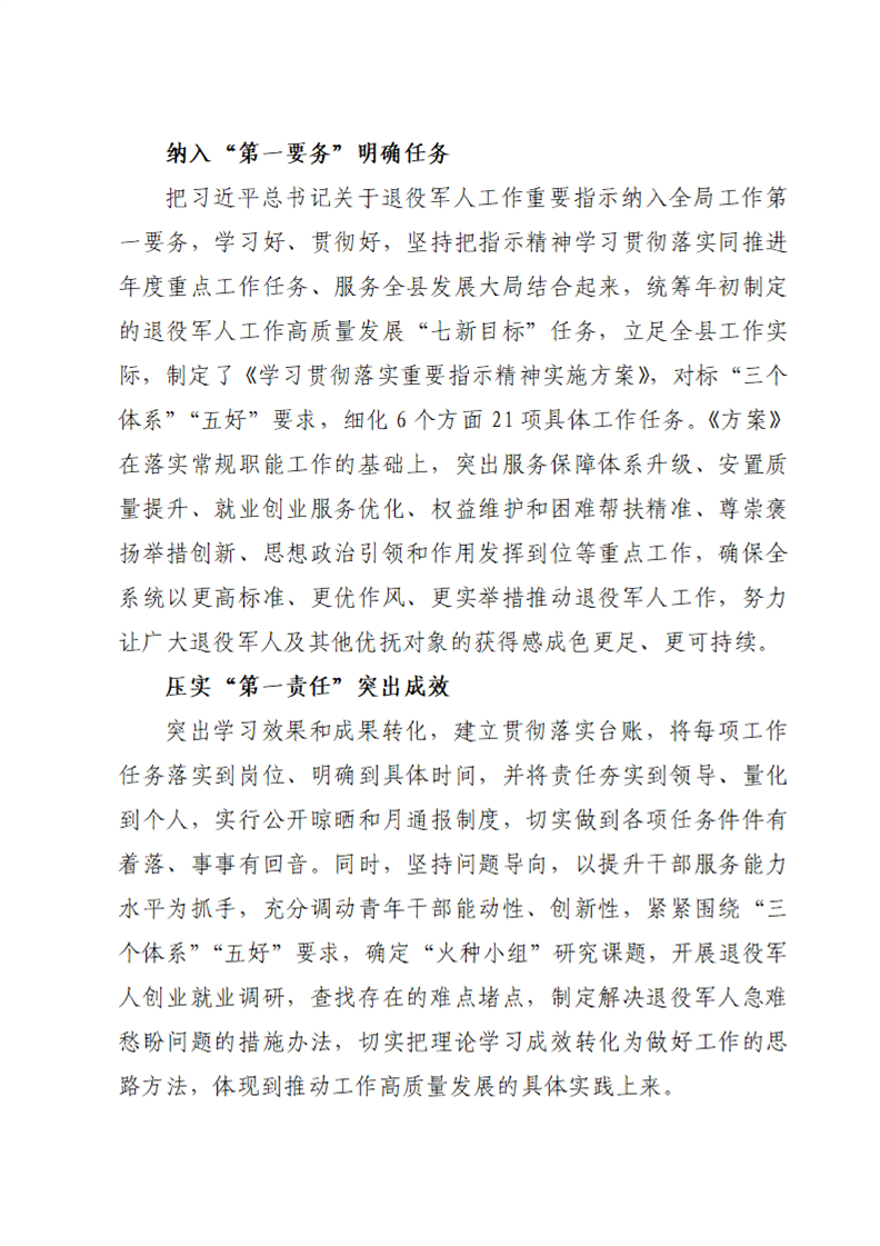 星空体育首页app“三个第一” 贯彻落实习近平总书记对退役军人工作重要指示精神