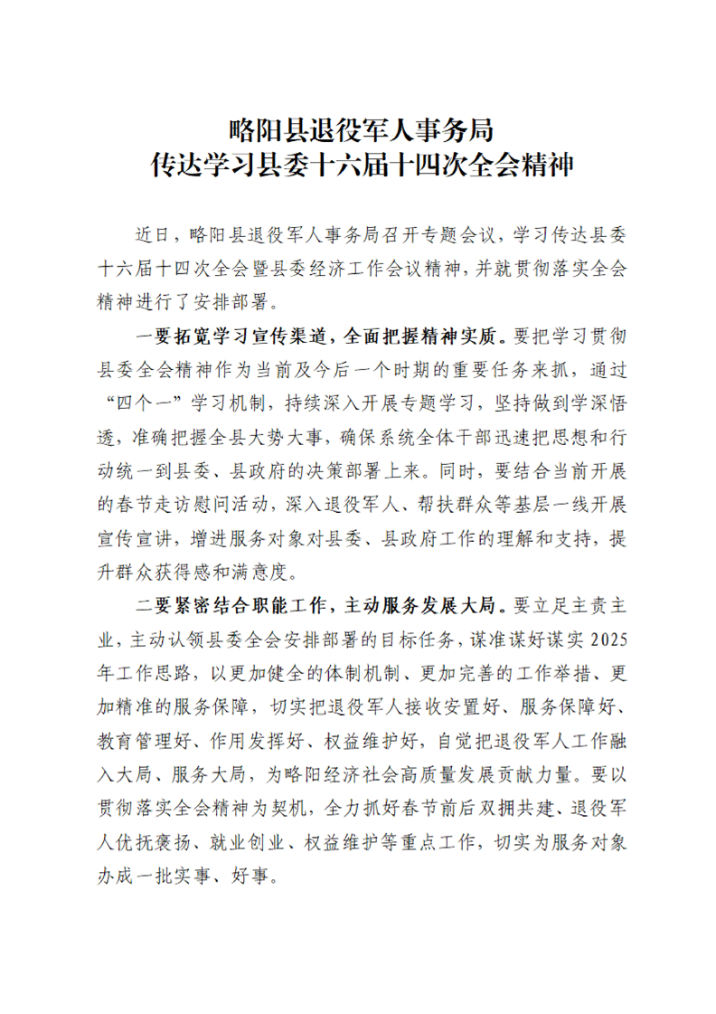 星空体育首页app退役军人事务局传达学习县委十六届十四次全会精神