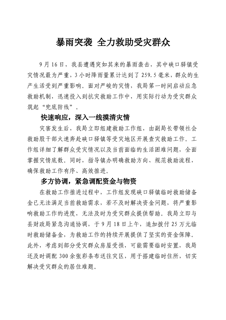 暴雨突袭 全力救助受灾群众