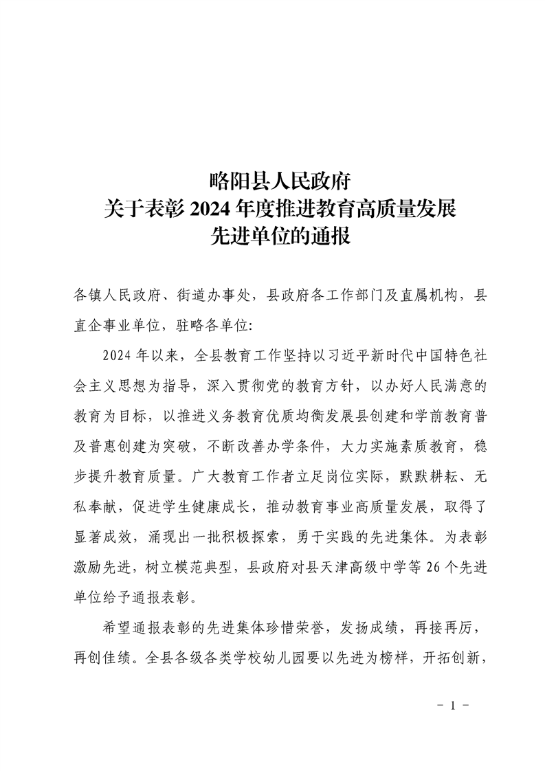 | 内容概述 | 星空彩票里的钱关于表彰2024年度推进教育高质量发展先进单位的通报 | ||||