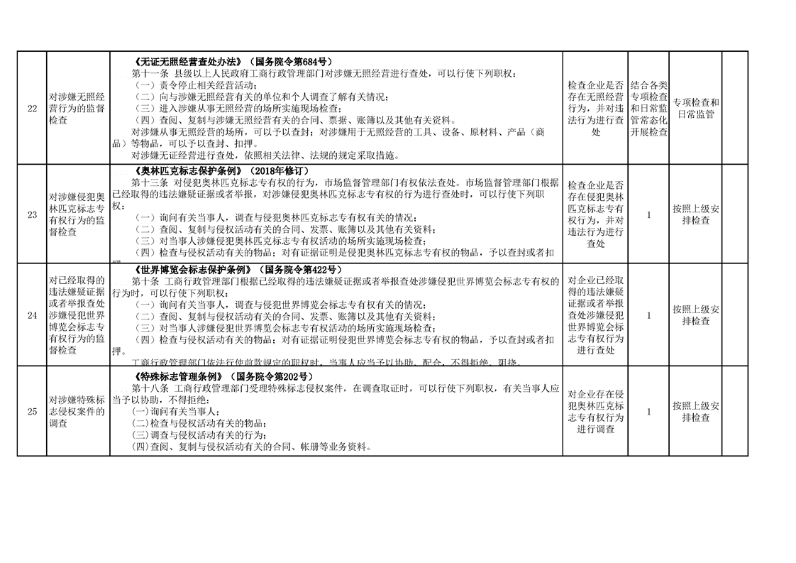 星空体育首页app市场监督管理局涉企行政检查事项梳理表