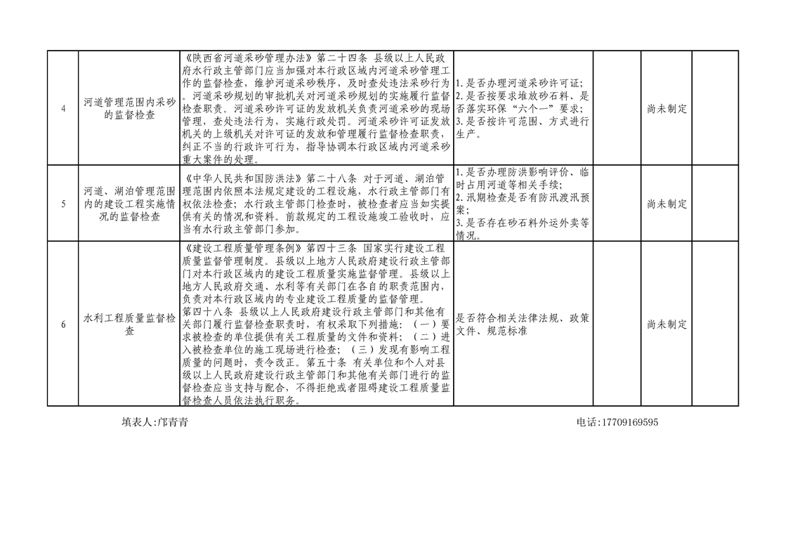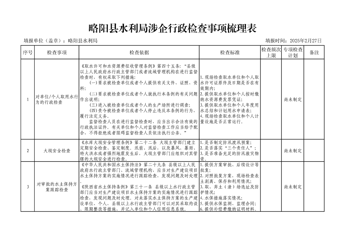 星空体育首页app水利局涉企行政检查事项梳理表