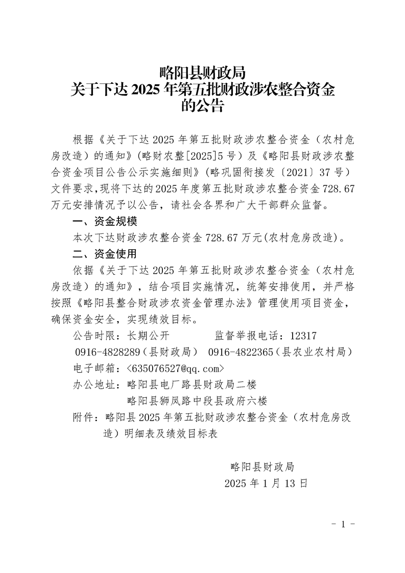 星空体育首页app财政局关于下达2025年第五批整合财政涉农资金的公告